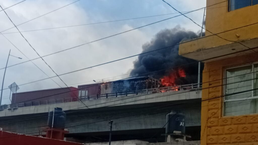 La circulación en la autopista México-Puebla a la altura de San Jerónimo Caleras se vio interrumpida en ambos sentidos y tanto en el segundo piso como en el paso inferior luego de que un tráiler que viajaba sobre el nivel superior sufriera un percance y comenzara a arder en llamas.